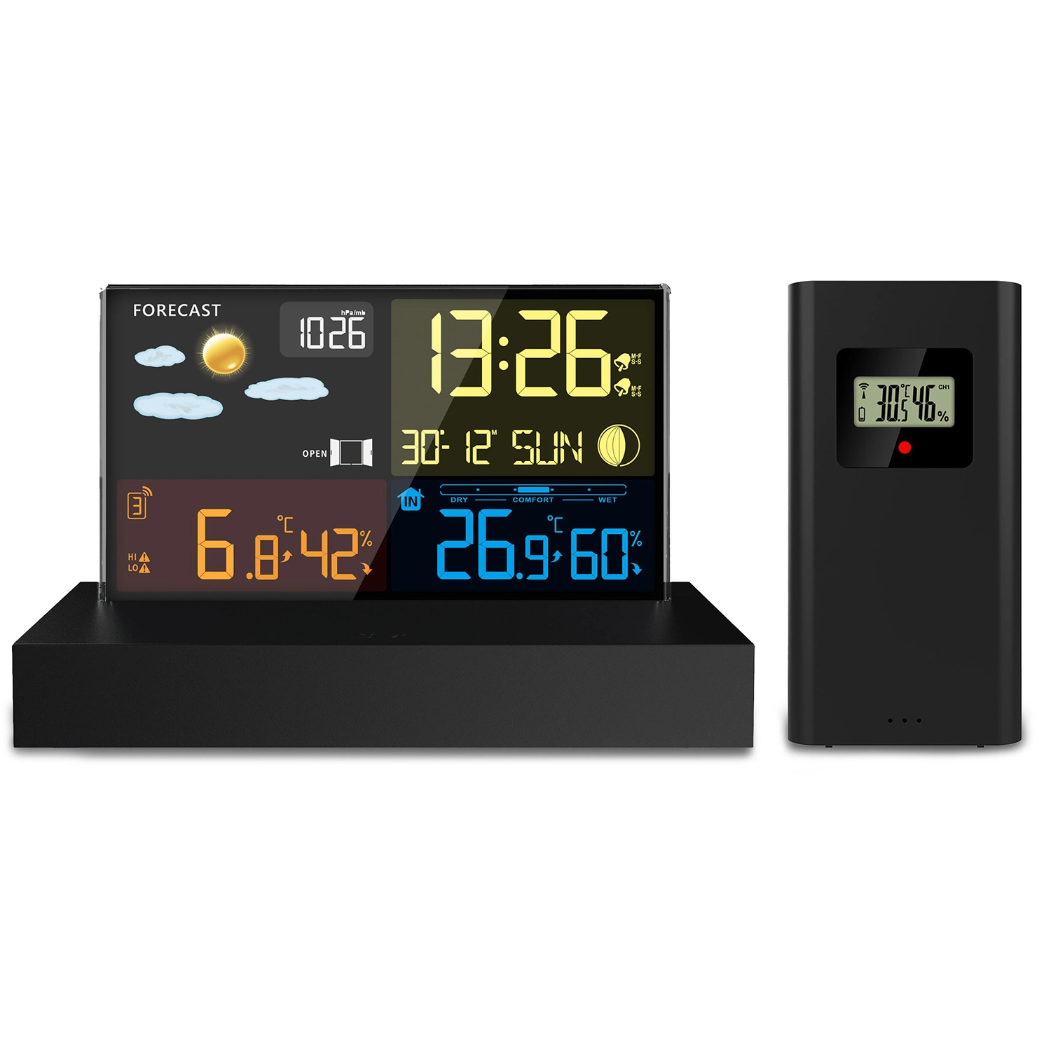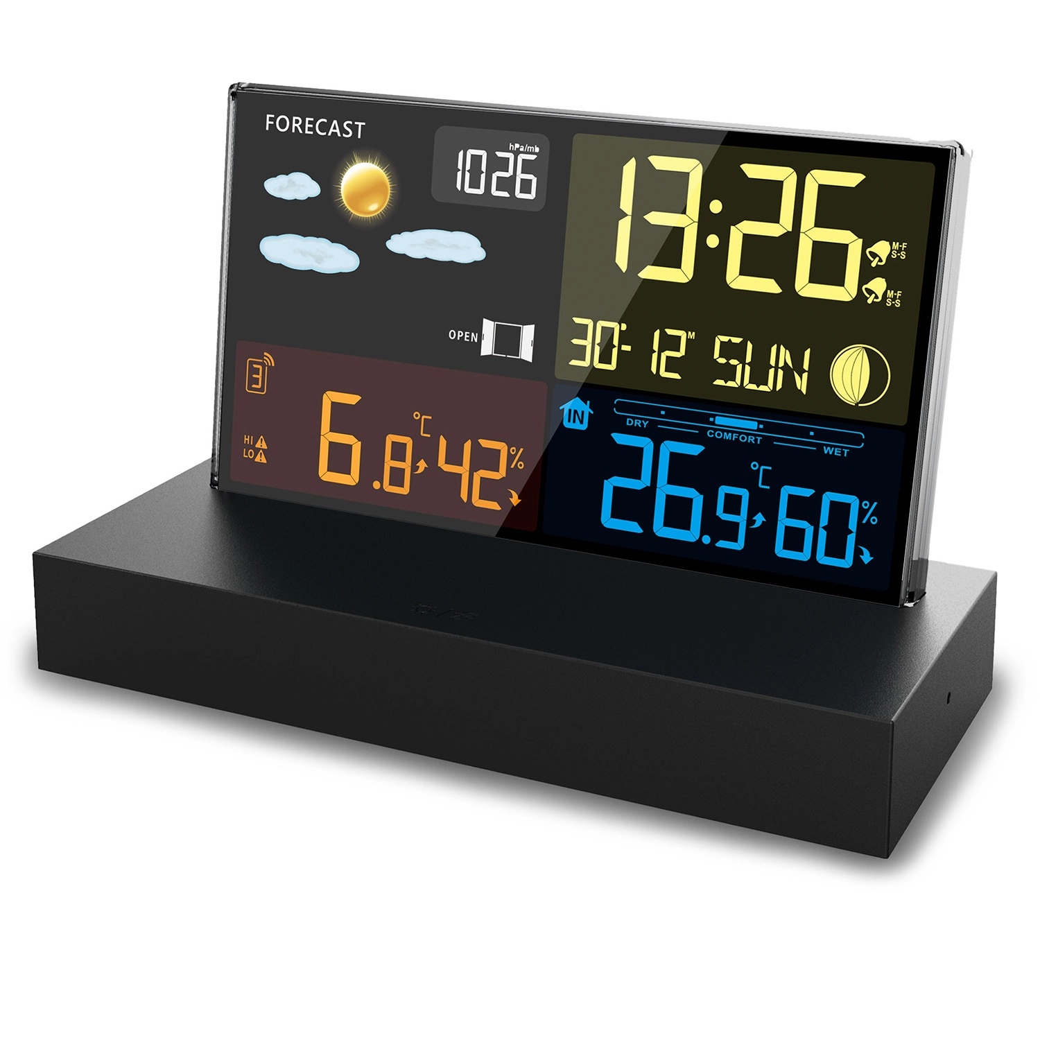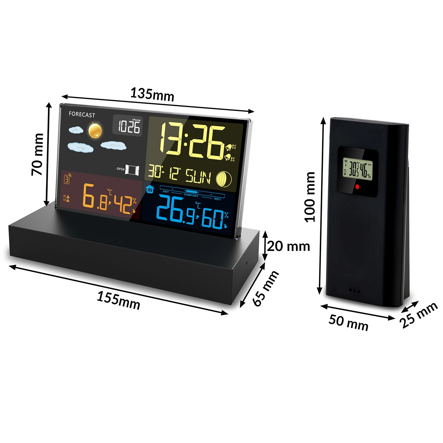 Veľký farebný displej zobrazuje čas, dátum, teplotu, vlhkosť, ikony počasia a trendy. Stanica analyzuje tlak, teplotu a vlhkosť a poskytuje presnú krátkodobú predpoveď.