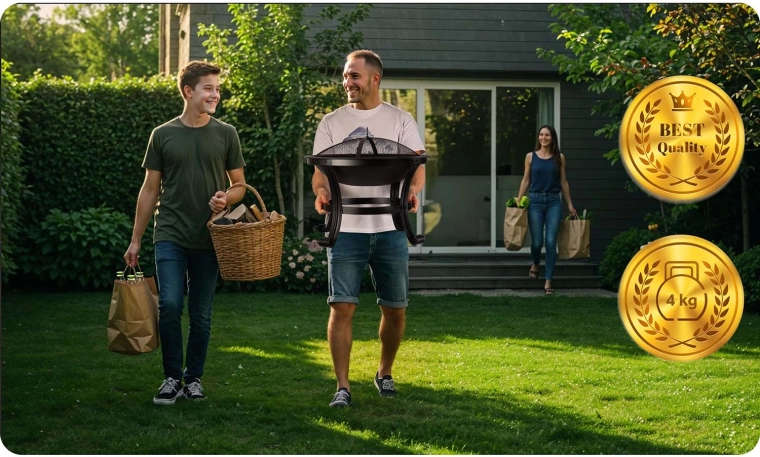 Štýlové a odolné záhradné ohnisko s priemerom 60 cm z kvalitnej ocele s práškovým lakom pre dlhú životnosť. Ponúka stabilnú konštrukciu, skvelú cirkuláciu vzduchu pre rýchle rozloženie ohňa a protijiskrovú kupolu pre bezpečnejšiu prevádzku. Vďaka nízkej hmotnosti a bočným madlám ho ľahko prenesiete tam, kde chcete vytvoriť pohodovú atmosféru a teplo pre spoločné stretnutia.