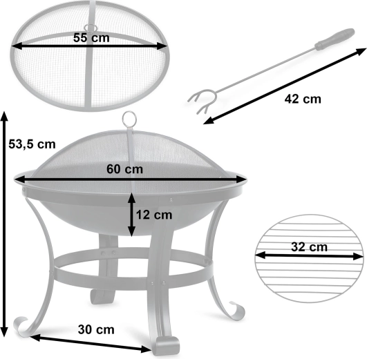 Vďaka premyslenej ventilácii a dostatočnej hĺbke misy sa oheň rozhori rýchlo a horí stabilne s krásnym plameňom. Ohnisko má pevné nohy pre istotu na terase aj trávniku, praktické madlá na prenášanie a v balení nájdete aj poker/pogrzebacz pre ľahké prikladanie.