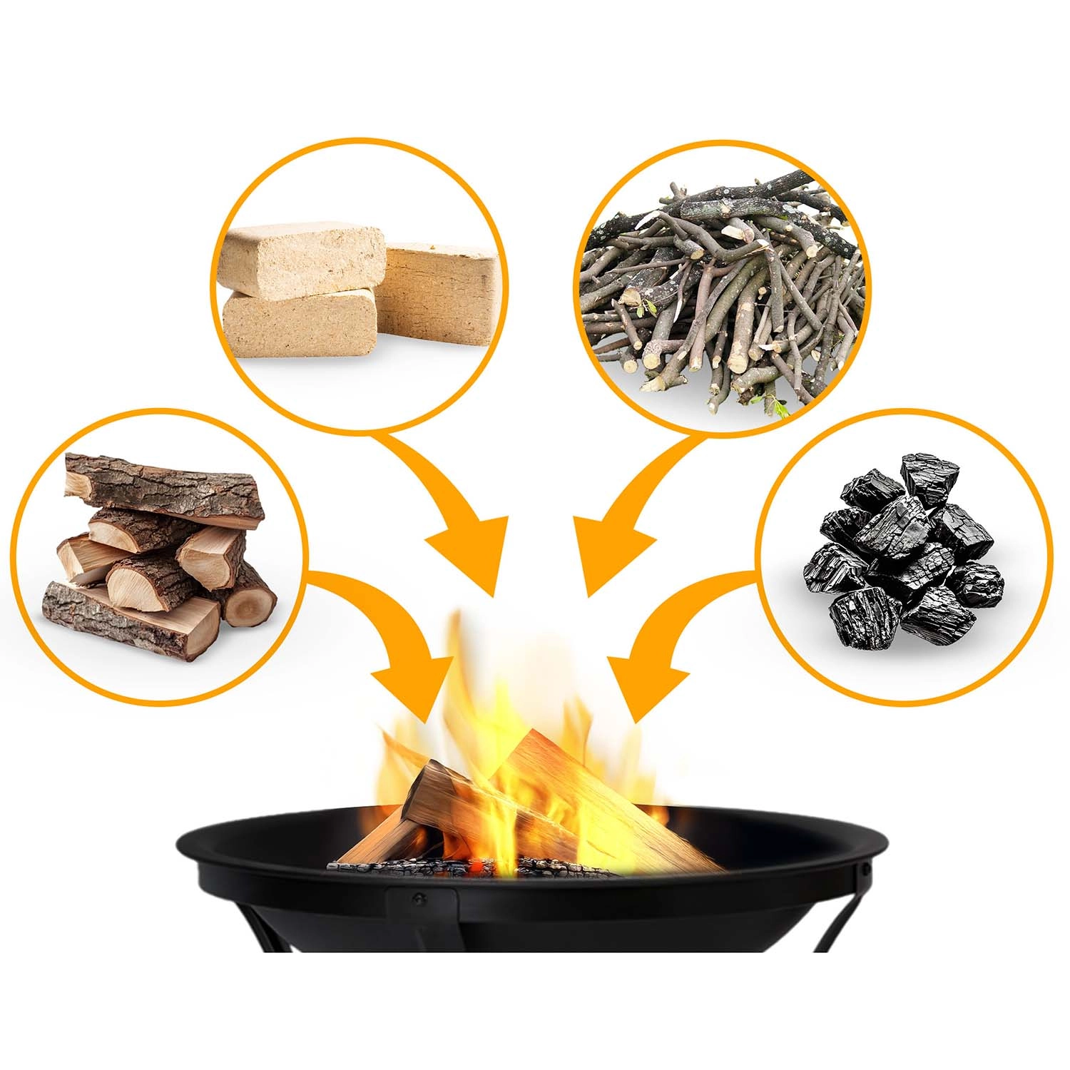Kúrte drevom, briketami, vetvami alebo dreveným uhlím. Otvor v dne a optimálna hĺbka misy podporujú rýchle zapálenie a stabilné horenie.