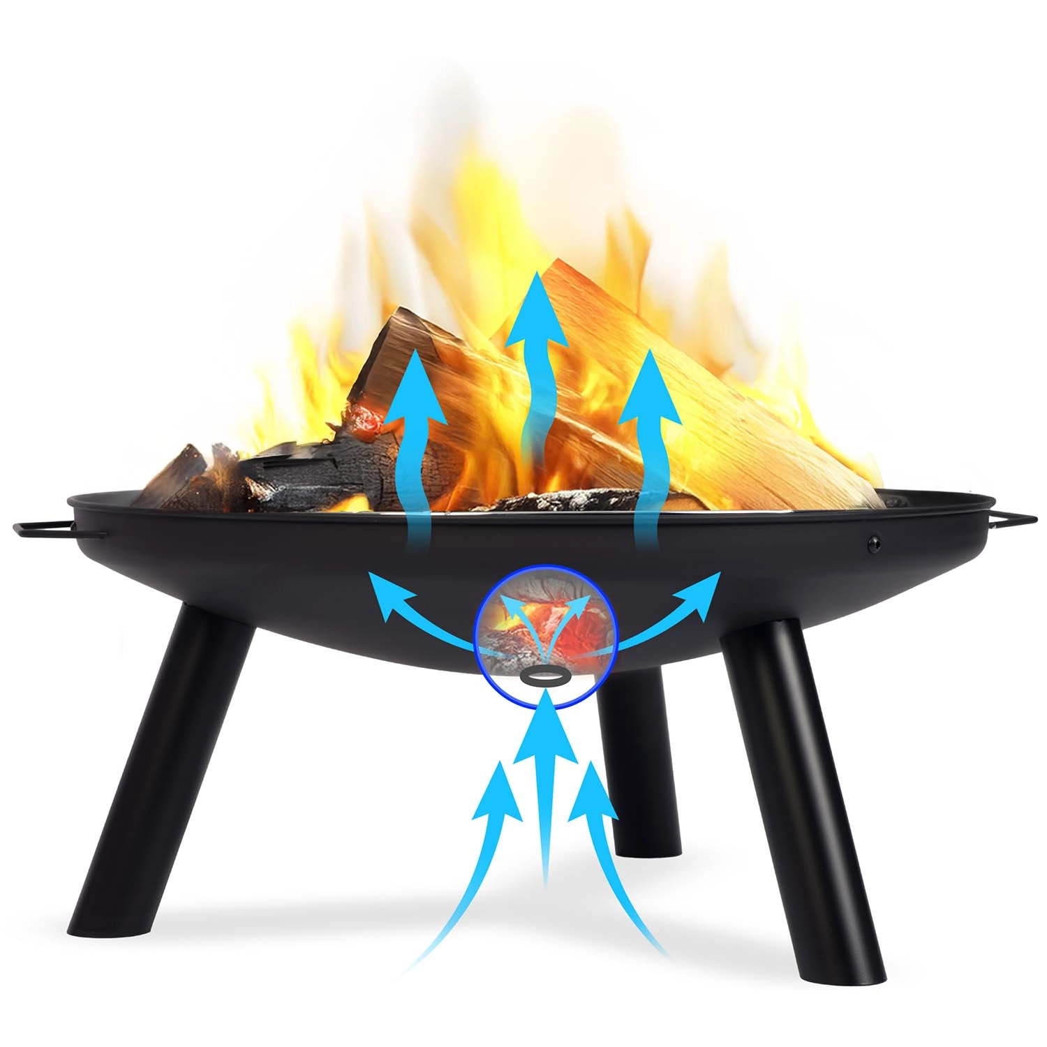 Horieť skvele s kusovým drevom, briketami, vetvami aj dreveným uhlím. Otvor v dne a optimálna hĺbka misy zlepšujú prívod vzduchu a stabilitu plameňa.
