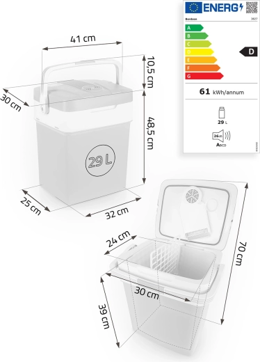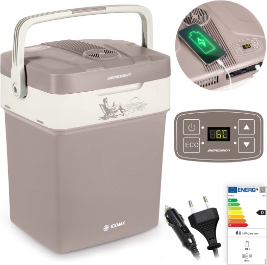 BERDSEN Icemax 29 l je praktická termoelektrická chladiaca/ohrevná box-chladnička do auta aj do domácnosti. Dvojité steny s kvalitnou izoláciou, integrovaný ventilátor na rovnomernú cirkuláciu vzduchu a inteligentný ECO režim zabezpečujú efektívnu prevádzku s nízkou spotrebou. Elektronický panel umožňuje presné nastavenie teploty, a to pri chladení aj pri ohreve.