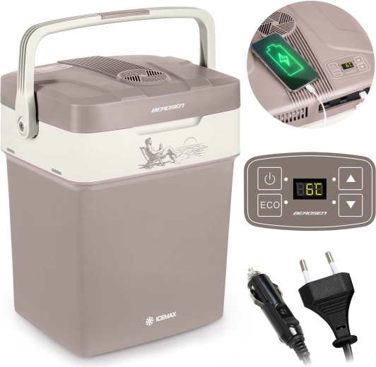 Užite si výlety, kempovanie aj dlhé cesty s kompaktnou elektrickou autochladničkou BERDSEN Icemax s objemom 29 l. Ponúka ECO režim na úsporu energie, aktívne chladenie až o 18 °C pod okolité prostredie, možnosť ohrevu až na 65 °C, elektronický displej s nastavením teploty a duálne napájanie 12 V/230 V. Vďaka tichému chodu, skladacej rukoväti a zámku veka je ideálna na cesty autom, na pláž aj na piknik.