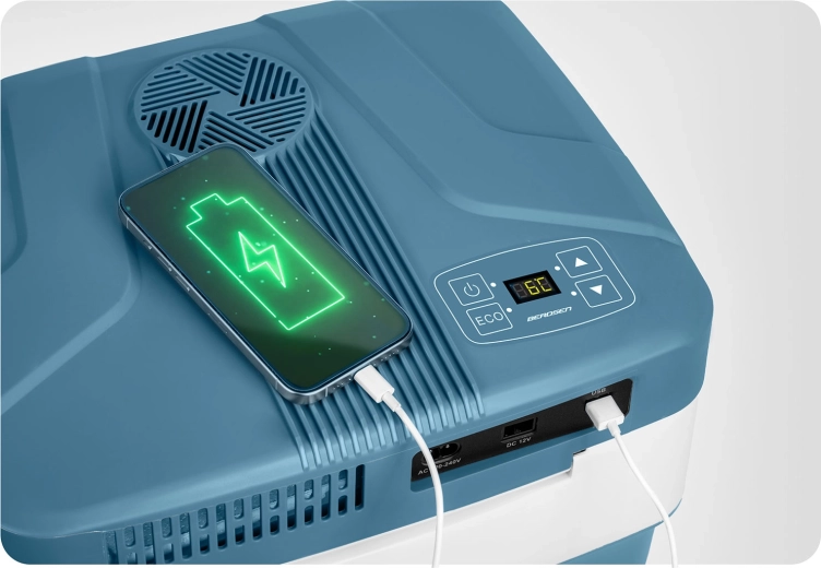 Používajte chladničku kdekoľvek vďaka napájaniu 12 V (auto) aj 230 V (domácnosť). V balení nájdete oba napájacie káble.
