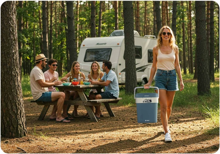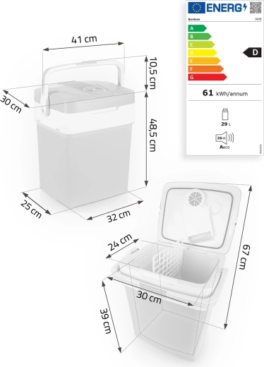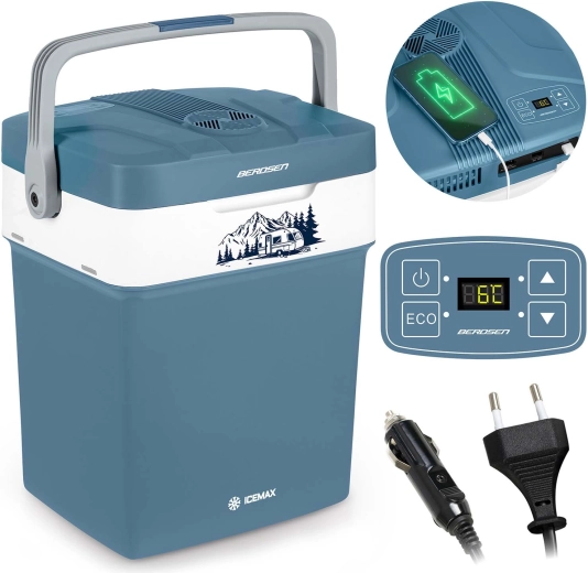 BERDSEN Icemax je ľahká a kompaktná elektrická chladnička s kapacitou 29 litrov, ktorá udrží vaše jedlo a nápoje dokonale vychladené. Má dvojité steny pre špičkovú izoláciu, vstavaný ventilátor pre rovnomernú cirkuláciu vzduchu a prehľadný elektronický displej s reguláciou teploty a voľbou ECO/Normal. Vďaka duálnemu napájaniu 12 V do auta a 230 V do siete ju využijete kedykoľvek a kdekoľvek.