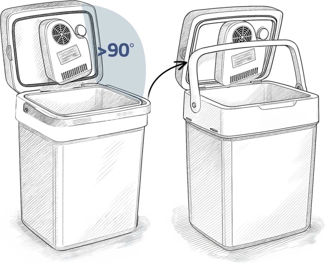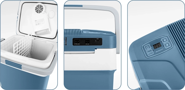 Chladí až o 18 °C pod okolitú teplotu a v režime ohrevu udrží pokrmy až na 65 °C. Praktická skladacia rukoväť slúži aj ako podpera veka, zámok pri zvislej polohe rukoväti bráni samovoľnému otvoreniu pri prenášaní a vnútorná prepážka pomáha s organizáciou obsahu. V ECO režime poteší mimoriadne tichá prevádzka (26 dB), takže neruší ani v noci.