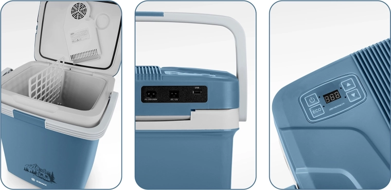 Ľahká a kompaktná autochladnička s objemom 26 litrov s digitálnym ovládaním teploty, dvoma režimami ECO/Normal a funkciou chladenia až o 18 °C pod okolité prostredie. Vďaka napájaniu 12 V aj 230 V, tichému chodu a USB výstupu je ideálna na cesty autom, na pláž aj kempovanie.