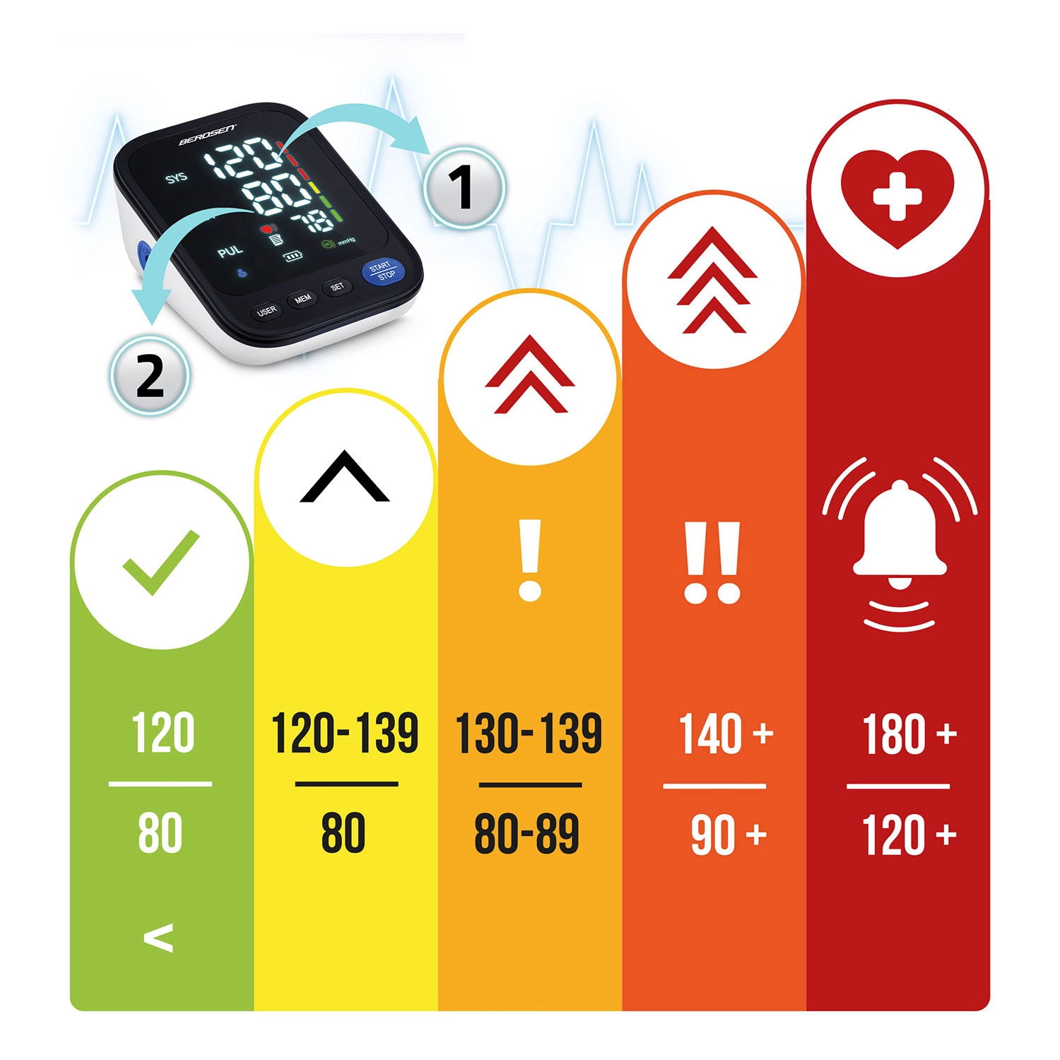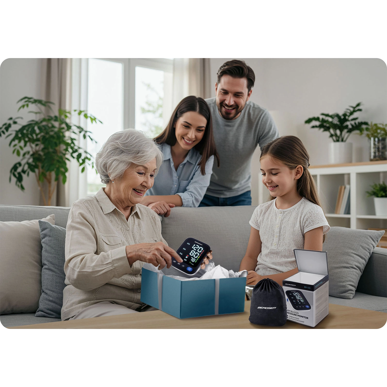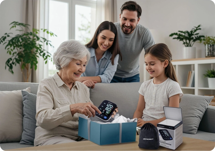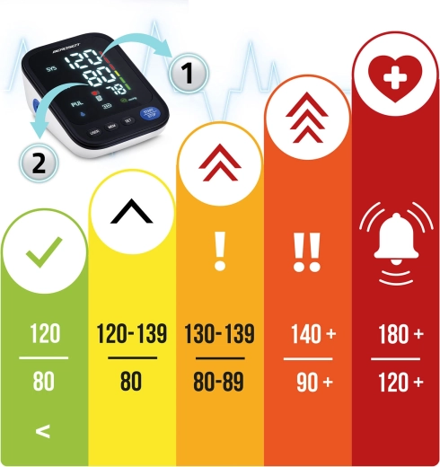 Tlakomer BERDSEN BD-122 je ideálny na každodenné domáce meranie krvného tlaku celej rodiny. Hlasové navádzanie v poľštine prevedie používateľa krok za krokom a prečíta namerané hodnoty, čo ocenia najmä seniori a osoby so zhoršeným zrakom. Prehľadný LED displej zobrazuje sys, dia a pulz, zatiaľ čo indikátor správneho nasadenia manžety a škála klasifikácie tlaku pomáhajú k presným a zrozumiteľným výsledkom.