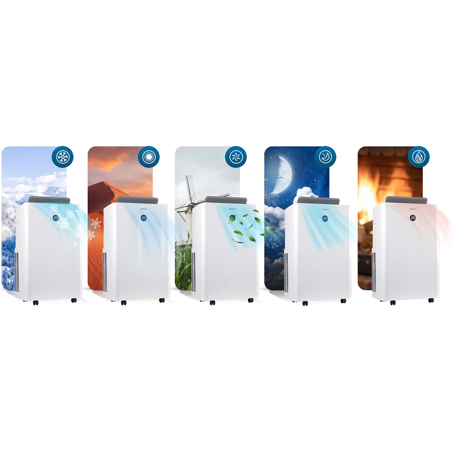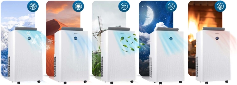 - Celoročné riešenie 5v1: chladí, kúri, odvlhčuje, vetrá a ticho pracuje v nočnom režime.