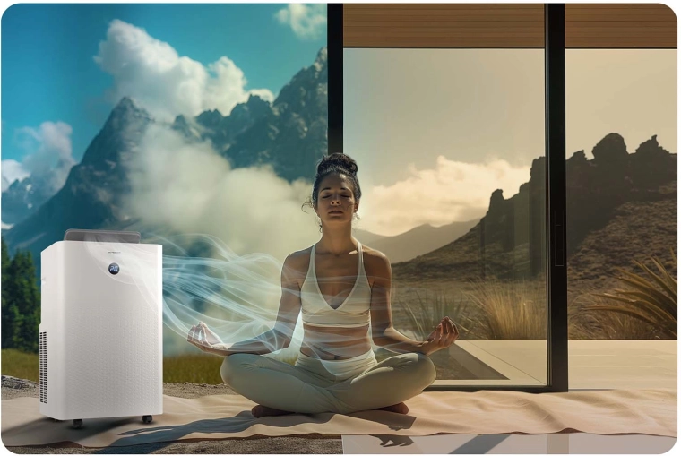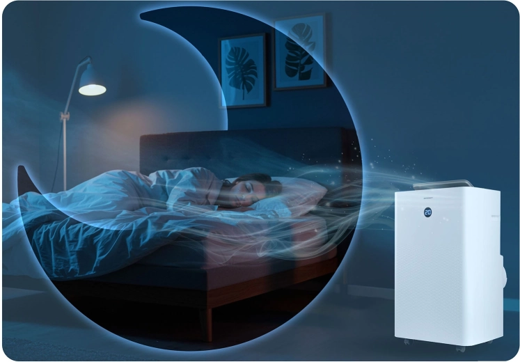 Samoodparovací systém a hygrostat s LED displejom účinne znižujú vlhkosť, bránia plesniam a zlepšujú kvalitu vzduchu aj počas nočného režimu.