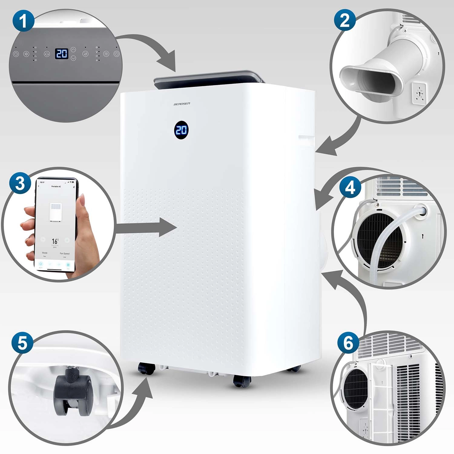 BERDSEN BD-584 je premyslená prenosná klimatizácia s kapacitou 14 000 BTU (4,1 kW chladenie) a funkciou kúrenia 3,22 kW, ktorá zabezpečí rýchlu reguláciu teploty aj vlhkosti. Samoodparovanie kondenzátu zvyšuje účinnosť a znižuje potrebu vylievania vody, zatiaľ čo tichá prevádzka a nočný režim nenarúšajú spánok ani sústredenie. Ovládanie je intuitívne cez dotykový panel, diaľkové ovládanie aj mobilnú aplikáciu Tuya Smart.