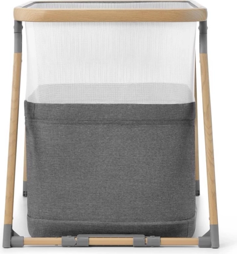 Sieťované panely podporujú prúdenie vzduchu a umožňujú vizuálny kontakt s dieťaťom, zatiaľ čo hliníkový rám v dekore dreva zaručuje stabilitu.