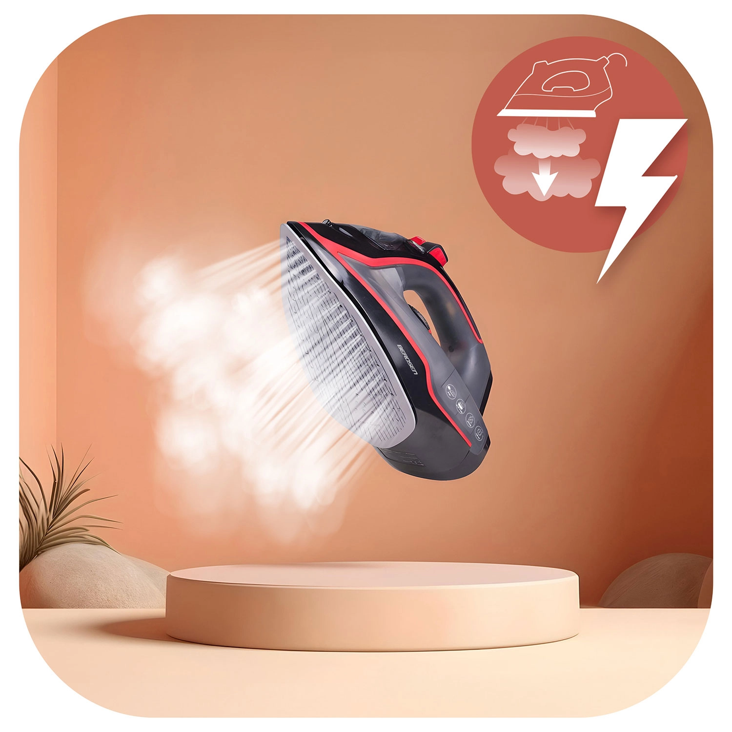 Výkonná parná žehlička Berdsen s príkonom 2600 W vám zaistí rýchle a hladké žehlenie bez námahy. Disponuje keramickou žehliacou plochou s mikrokanálikmi pre rovnomernú distribúciu pary, reguláciou teploty a pary, funkciou vertikálneho naparovania, automatickým vypnutím a programom Self Clean pre jednoduchú údržbu. Praktický rozprašovač, otočný kábel 360° a nádržka na vodu 230 ml zvyšujú komfort pri každodennom používaní.