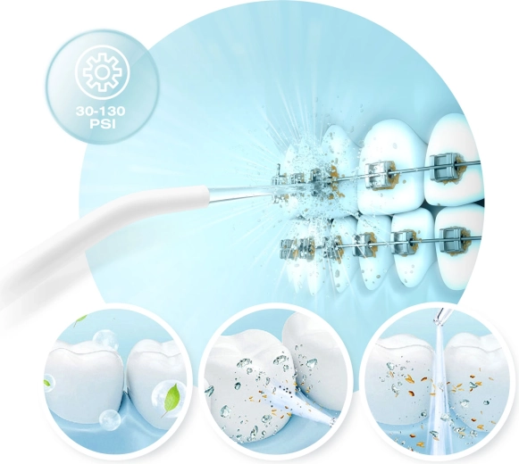 - Silný výkon až 130 PSI a 1800 pulzov/min na dôkladné odstránenie plaku.