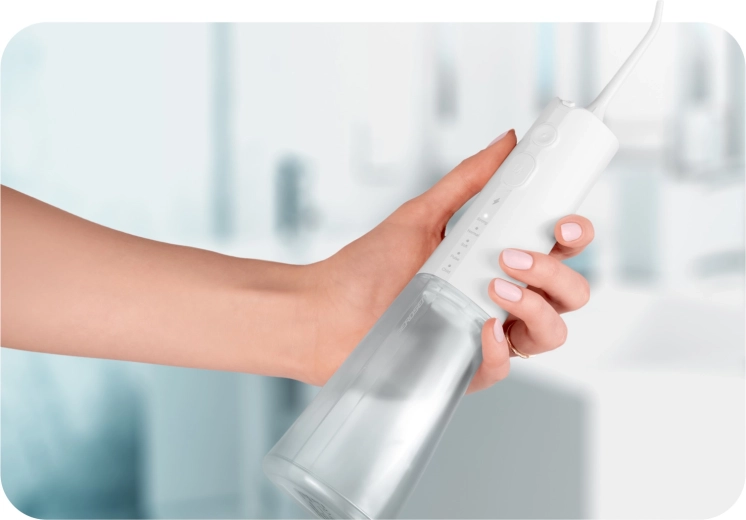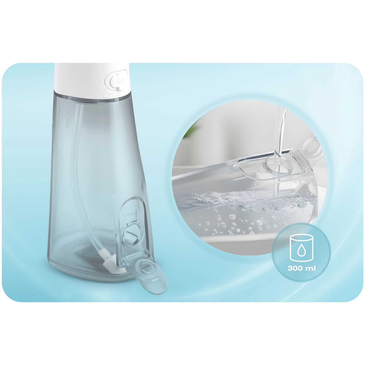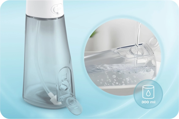 Menej prerušovania a lepší dosah. Objem 300 ml umožní dlhšiu irigáciu bez dopĺňania vody, otočná tryska 360° sa ľahko dostane do ťažko prístupných miest.