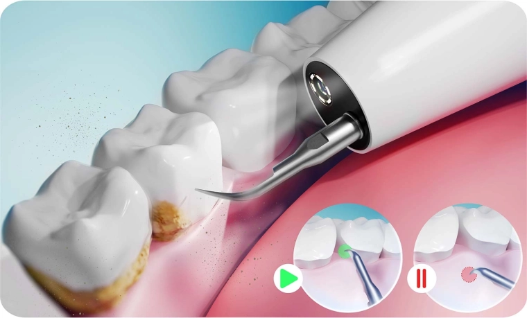 Bezpečnosť na prvom mieste: Zariadenie sa automaticky zastaví pri kontakte s ďasnom alebo jazykom. Technológia sonického a ultrazvukového čistenia je šetrná k sklovine a ďasnám, ale účinná proti kameňu a usadeninám. Vďaka IPX7 je skaler odolný voči vode a striekajúcej vode, LED svetlo spresňuje prácu a USB‑C nabíjanie uľahčuje každodenné používanie.
