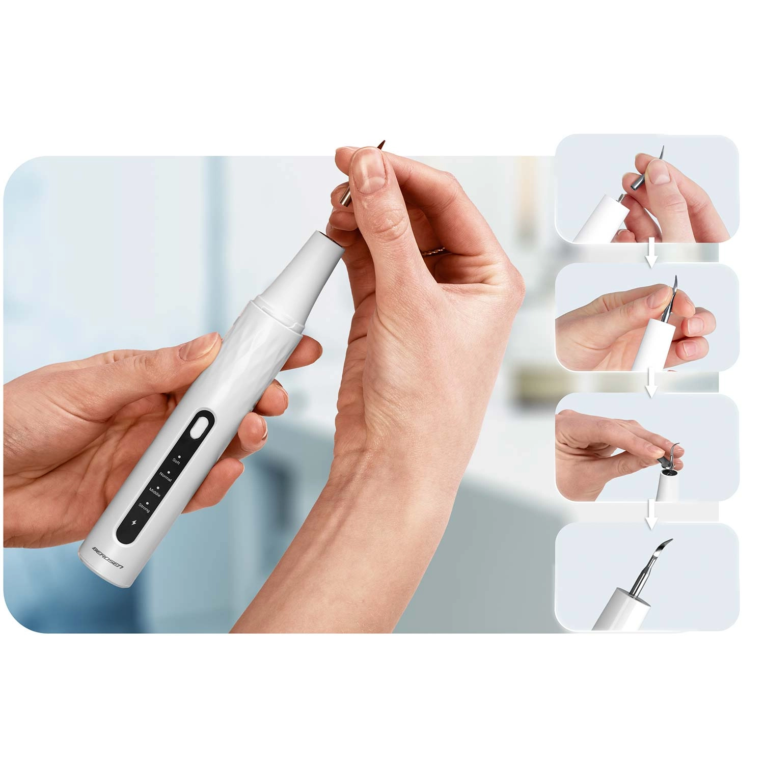 - STRONG (42–45 kHz) – účinné pri silnom zubnom kameni.