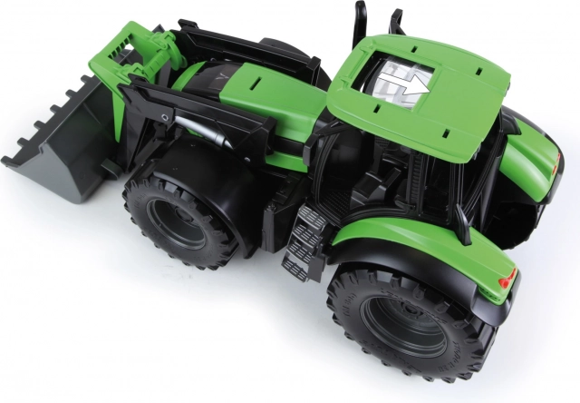 Robustný detský traktor s čelnou lyžicou v dizajne DEUTZ FAHR Agrotron nadchne realistickým spracovaním v mierke 1:15. Má funkčnú prednú lyžicu, je vyrobený z kvalitného plastu a hodí sa na hraní doma aj vonku. Dĺžka 45 cm.