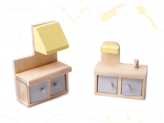 Malá drevená kuchynka s realistickými detailmi je ideálnym miestom pre prípravu imaginárnych jedál a zábavu vašich detí.
