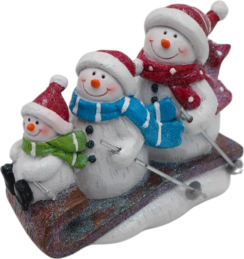 Okúzľujúca dekorácia rodinka snehuliakov na saniach vnese do interiéru teplo domova a čaro zimnej romantiky. S jemnými detailmi, farebnými šálmi a milým výrazom sa stane stredobodom pozornosti na poličke, komode aj parapete. Vďaka kvalitným, na dotyk príjemným materiálom vydrží zdobiť mnoho sezón.