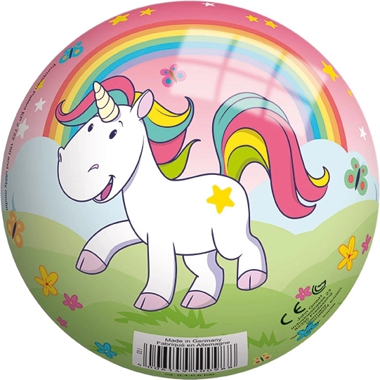 Kvalitná PVC lopta s motívom jednorožca s priemerom 130 mm.