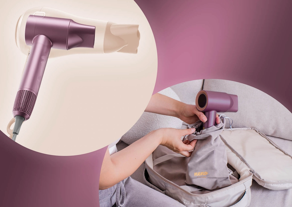 Pre presné tvarovanie je k dispozícii magnetická koncentračná tryska, odnímateľný kryt filtra uľahčí čistenie a predĺži životnosť. Kompaktný a ľahký dizajn je ideálny na doma aj na cesty – vrátane elegantného cestovného puzdra. Sušič si navyše pamätá poslednú zvolenú teplotu vďaka funkcii pamäte.