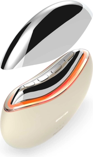 - 2 režimy starostlivosti: Anti‑Aging (RF + vibrácie) a Brighten (RF + EMS + červené LED + vibrácie)