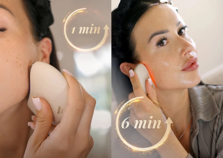 - RF (rádiofrekvencia), EMS mikroimpulzy, červené LED 620 nm, sonické vibrácie