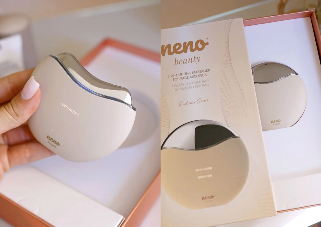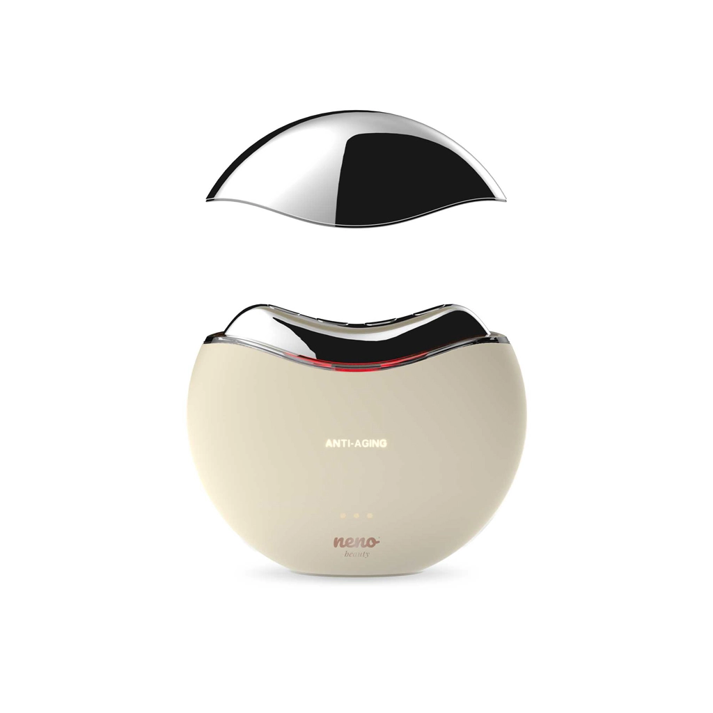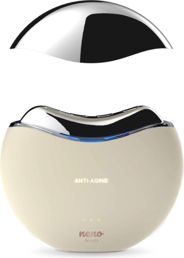 Neno Beauty Auri je elegantné 5 v 1 zariadenie na omladenie pleti tváre a krku. Spája rádiofrekvenciu, EMS mikroimpulzy, červené LED svetlo 620 nm a sonické vibrácie v ergonomickej hlavici v tvare Gua Sha. Vďaka dvom režimom – Proti starnutiu a Rozjasnenie – ľahko zacielite na spevnenie kontúr, vyhladenie jemných vrások a zjednotenie tónu pleti.