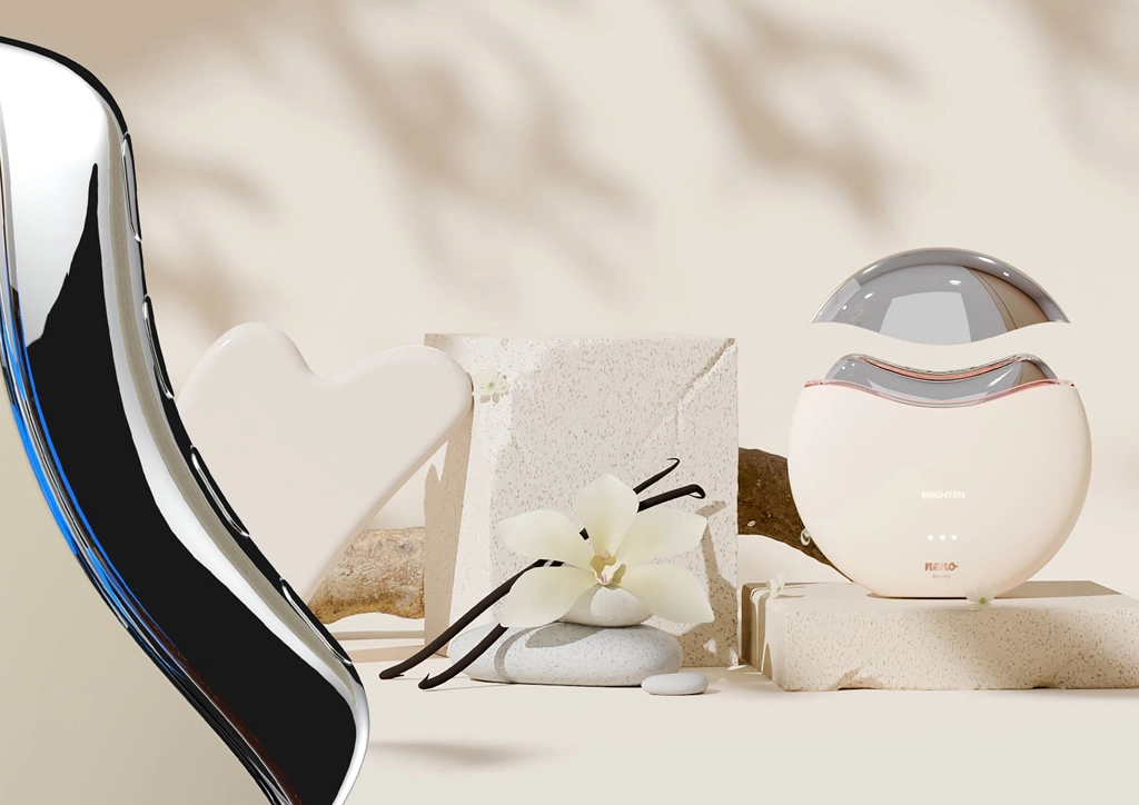 Prepínajte medzi Anti‑Aging (RF + vibrácie) a Brighten (RF + EMS + červené LED 620 nm + vibrácie) pre cielené spevnenie, vyhladenie a zjednotenie tónu pleti.