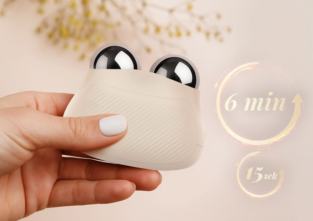 Ergonomická dvojitá hlavica prirodzene kopíruje líca, sánku aj krk. Päť úrovní intenzity, pamäť posledného nastavenia a 6‑minútová časomiera s intervalmi po 15 s zjednodušia každodenný rituál.