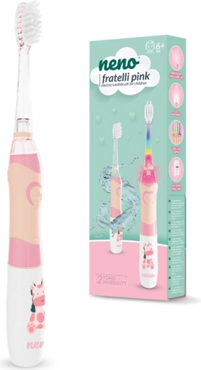 Spríjemnite deťom každodenné čistenie zubov s elektrickou kefkou Neno Fratelli. Ponúka jemné nylonové štetinky, až 24 000 vibrácií za minútu, farebné LED svetlo a 2-minútový časovač s 30 s intervalmi pre správnu techniku. Vďaka vodotesnosti IPX7 a ergonomickému prevedeniu je ideálnou voľbou pre deti od 6 rokov.