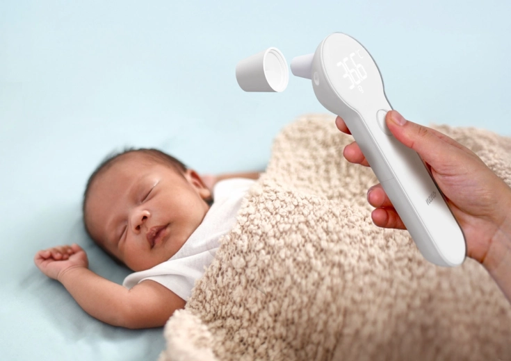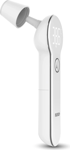 Inteligentný systém automaticky prepína režimy: po odňatí magnetického krytu prejdete z merania na čele do režimu ušného merania. Teplomer navyše informuje zvukovým signálom o dokončení merania a upozorní pri zvýšenej teplote. Ergonomický, ľahký a odolný dizajn sa pohodlne drží a zmestí sa do každej lekárničky.