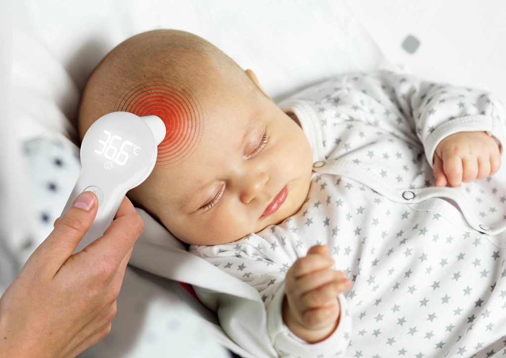 Veľké, jasné číslice ľahko prečítate aj v tme. Šetrné bezdotykové meranie nezobudí spiace dieťa.