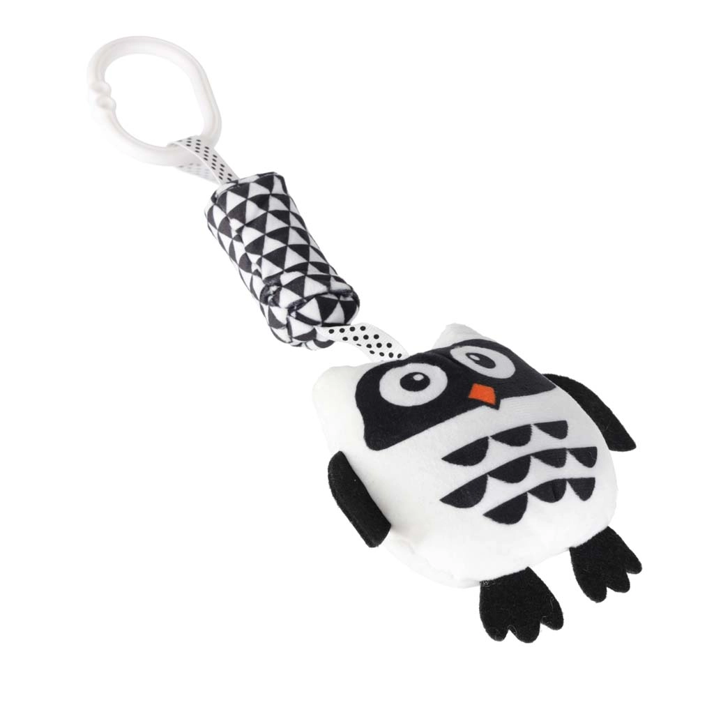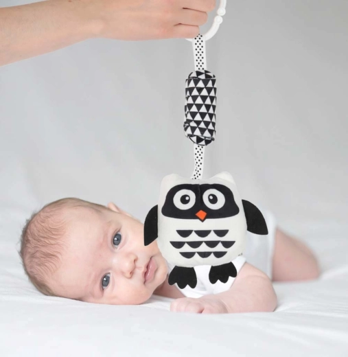 Táto kontrastná závesná hračka v tvare sovy je navrhnutá s ohľadom na potreby novorodencov. Vysoký kontrast čiernej a bielej farby priťahuje detské oči a podporuje raný rozvoj zraku. Mäkké, na dotyk príjemné materiály a bezpečné spracovanie zaručujú pohodlné a bezpečné objavovanie.