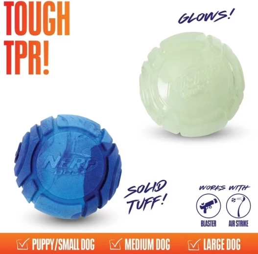 Obdarujte svojho štvornohého parťáka zábavným setom dvoch loptičiek NERF DOG. Svietiaca loptička Lightning zvyšuje viditeľnosť pri šere a dodá večernému aportovaniu extra iskru. Loptička Sonic s vôňou arašidového masla zas podnecuje čuch a láka k zmyslovej a interaktívnej hre. Obe loptičky majú priemer 6,5 cm, sú z odolnej gumy a skvelé na aport, hádzanie aj chytanie vonku aj doma.