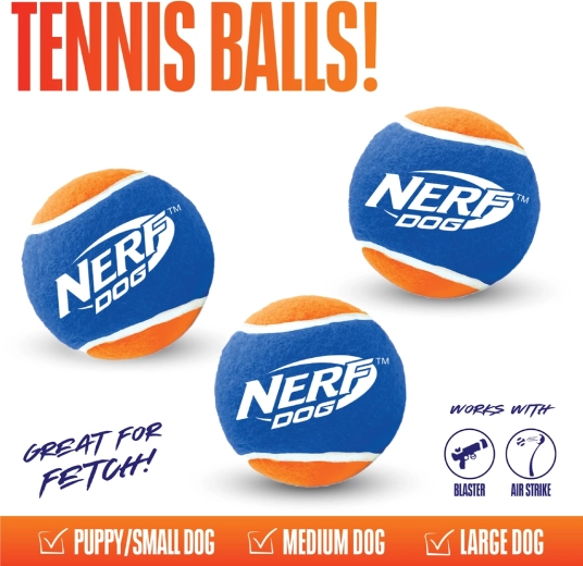 Set troch loptičiek NERF DOG je ideálny na každodennú hru „hoď a aportuj“. Uzatvárateľná tlaková tuba pomáha udržať optimálny tlak, pružnosť a odraz loptičiek, takže si váš pes užije konzistentný výkon pri každom hode. Varianta bez píšťalky ponúka tichšiu zábavu – perfektná pre citlivých psov aj majiteľov, ktorí preferujú pokojnejšiu hru.