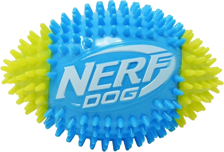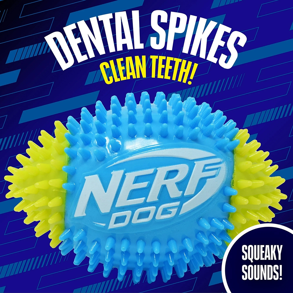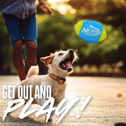 Hračka Nerf Dog pískajúca futbalová lopta so špuntmi prináša dynamickú interaktívnu zábavu pre psov, ktorí milujú pohyb. Odolná termoplastická guma (TPR) zaisťuje pružnosť, dlhú životnosť a šetrnosť k zubom. Textúrovaný povrch s hrotmi zlepšuje úchop pri aporte a zároveň podporuje prirodzené žuvanie a masíruje ďasná.