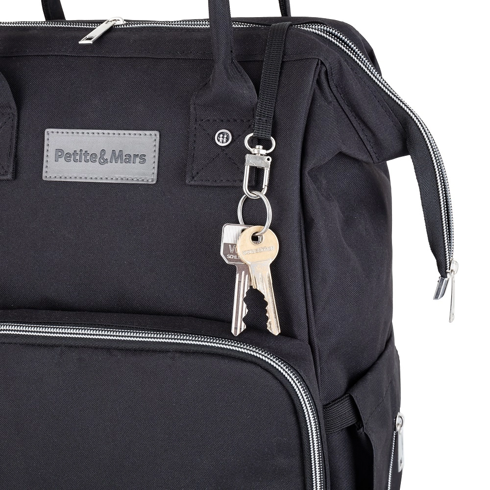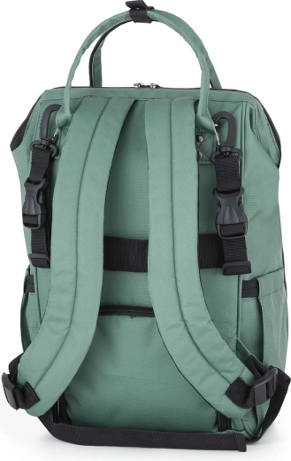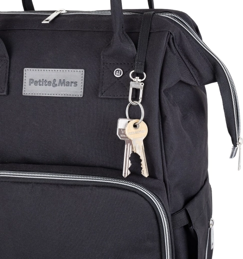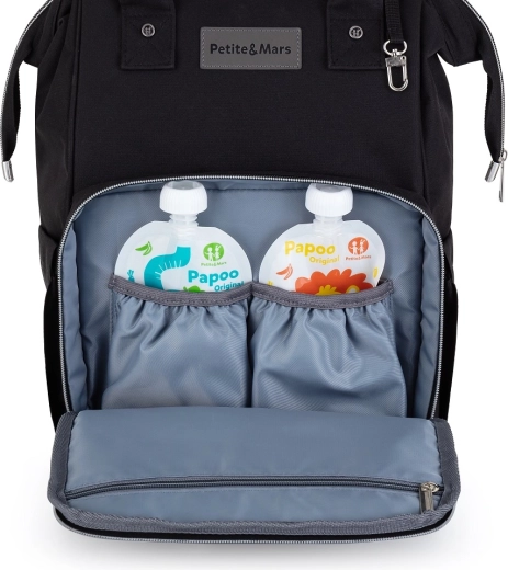 Premyslené členenie ponúkne 11 ľahko prístupných vreciek, vrátane 2 termovreciek na udržanie teploty fliaš, vodotesného vrecka na mokré oblečenie či utierky, vonkajšieho vrecka na fľašu a vonkajšieho vrecka na vlhčené obrúsky. Nechýba šnúrka na kľúče, zadný zipsový vstup pre rýchly prístup a popruh na nasunutie na madlo kufra na cesty.