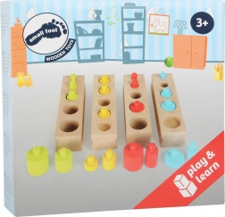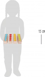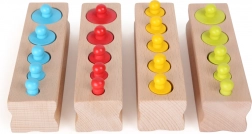 Drevené farebné valčeky pomáhajú deťom porozumieť vzorom a činiť rozhodnutia o správnom umiestnení.