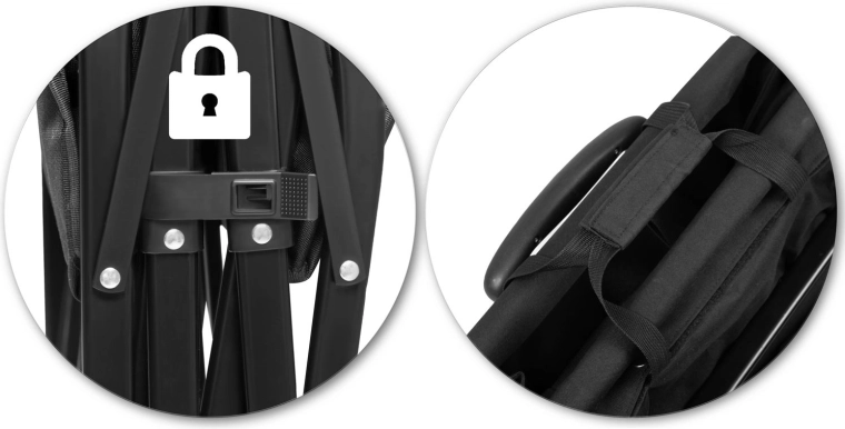 - Bleskové zloženie do kompaktných rozmerov na jednoduché uloženie v kufri auta alebo v garáži.