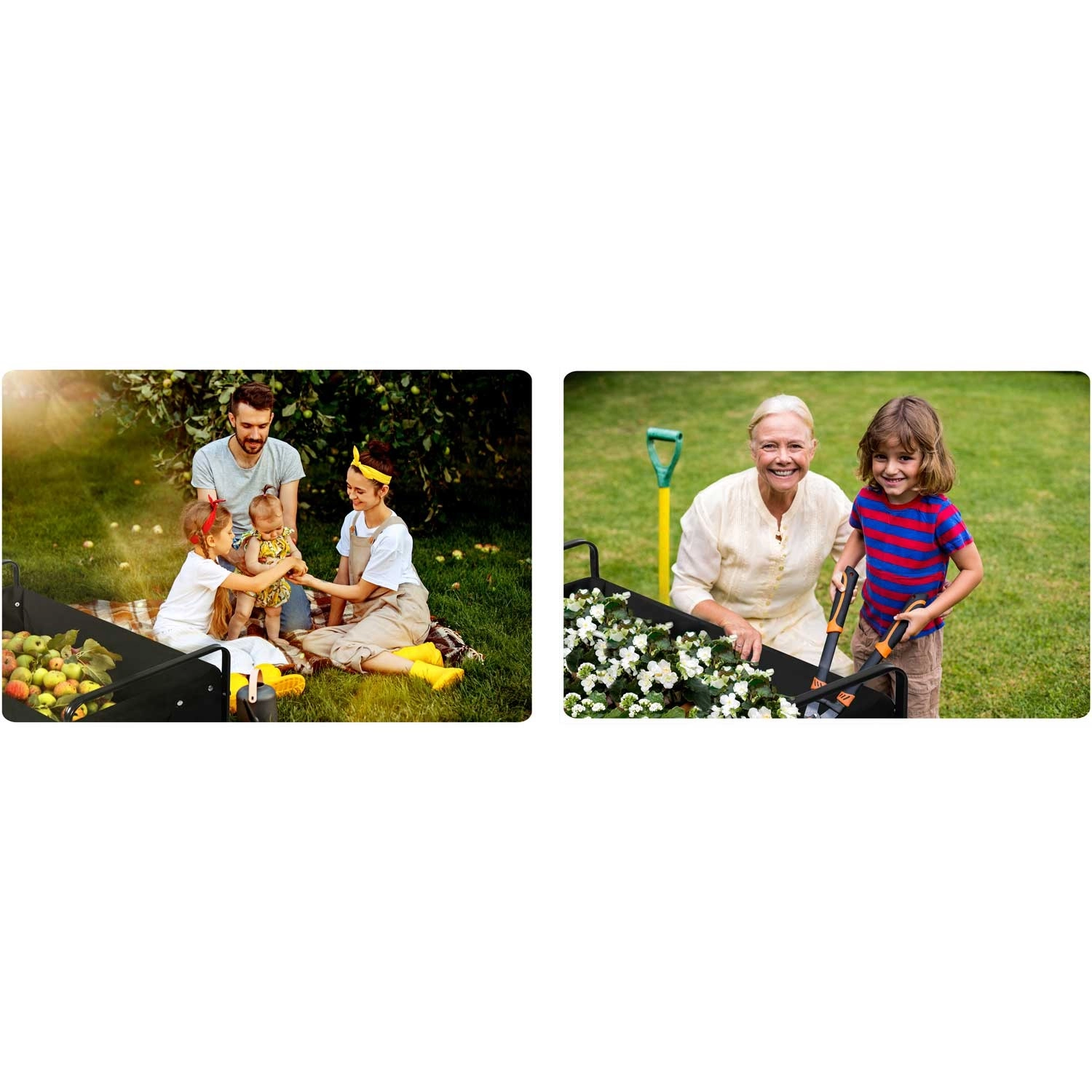 Skladací vozík HUMBERG je ideálnou voľbou na každodenné používanie – od záhradných prác cez nákupy až po víkendové výlety. Robustný oceľový rám s práškovým lakom, hlboká textilná korba s objemom 100 l a veľké terénne kolesá zaistia pohodlnú a bezpečnú prepravu nákladu až do 120 kg.