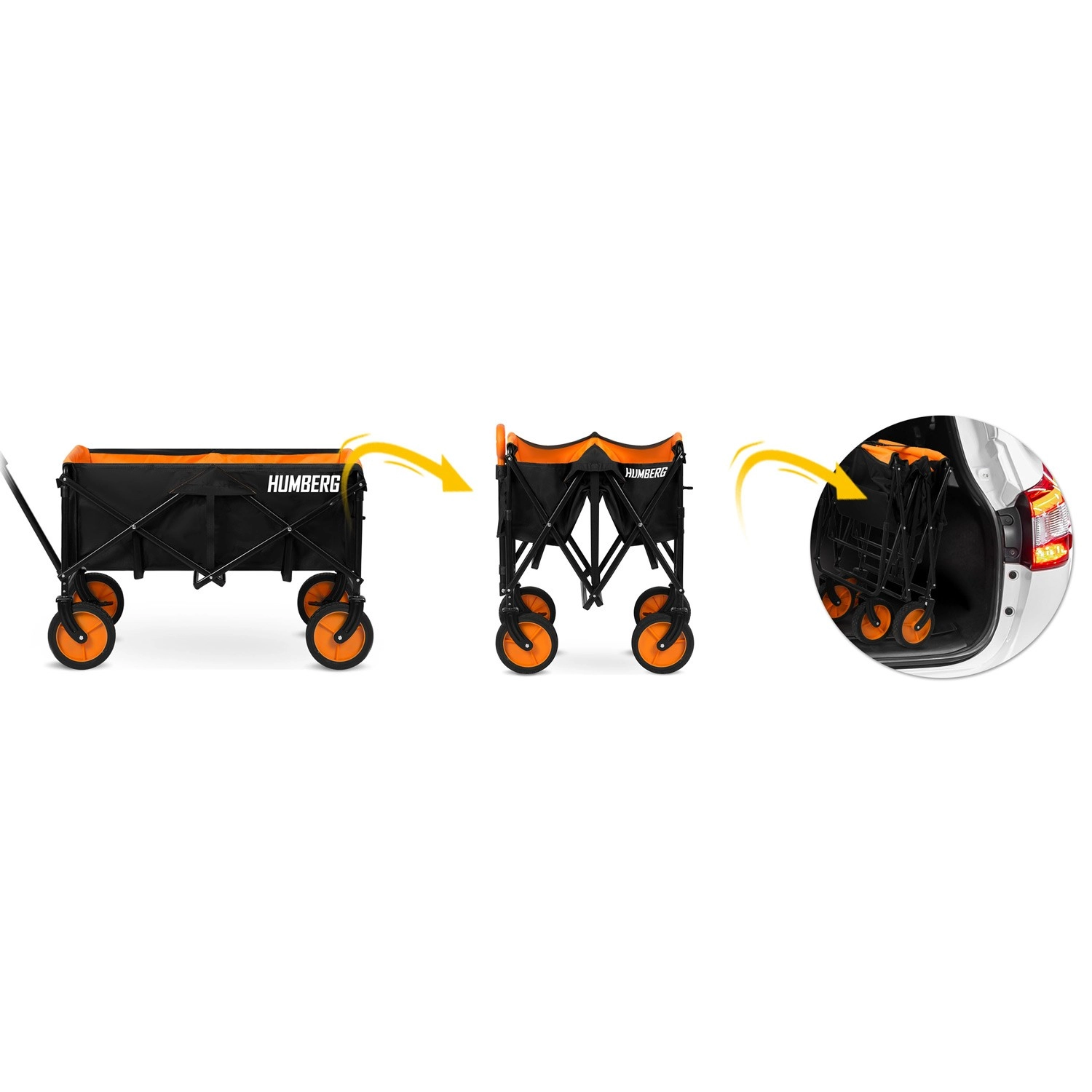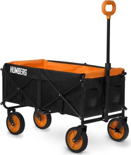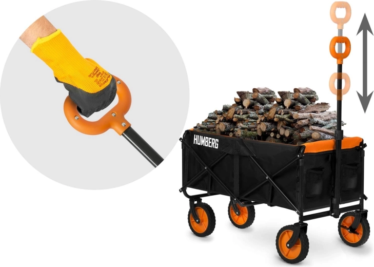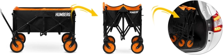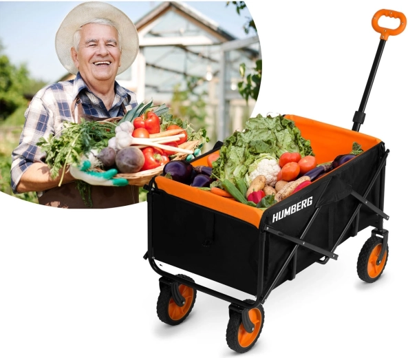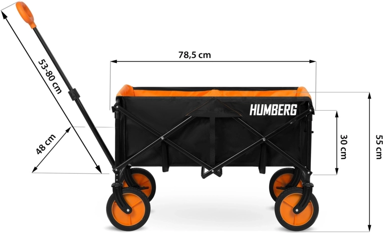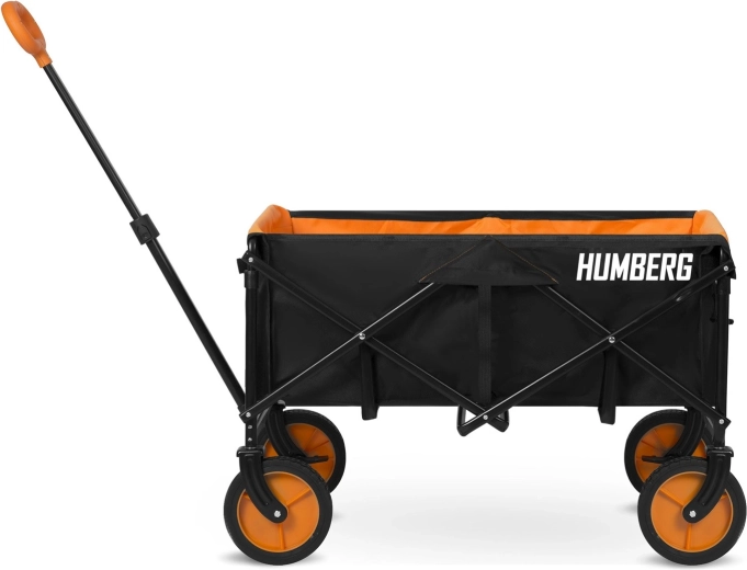 Skladací prepravný vozík HUMBERG je spoľahlivý pomocník na každodenné použitie – od záhradníčenia cez kempovanie až po dovolenku pri vode. Pevný oceľový rám s práškovým lakom odolá námahe, zatiaľ čo priestranná textilná korba s objemom 100 l pojme náradie, nákupy aj športovú výbavu. Vďaka rýchlemu skladaciemu mechanizmu vozík zložíte behom okamihu a ľahko uložíte do kufra auta či komory.