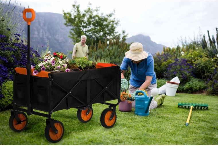 Vozík zložíte behom pár sekúnd do plochého balíčka, ktorý ľahko uložíte do kufra auta alebo skrine. Ideálny na cesty, pikniky aj kempovanie.