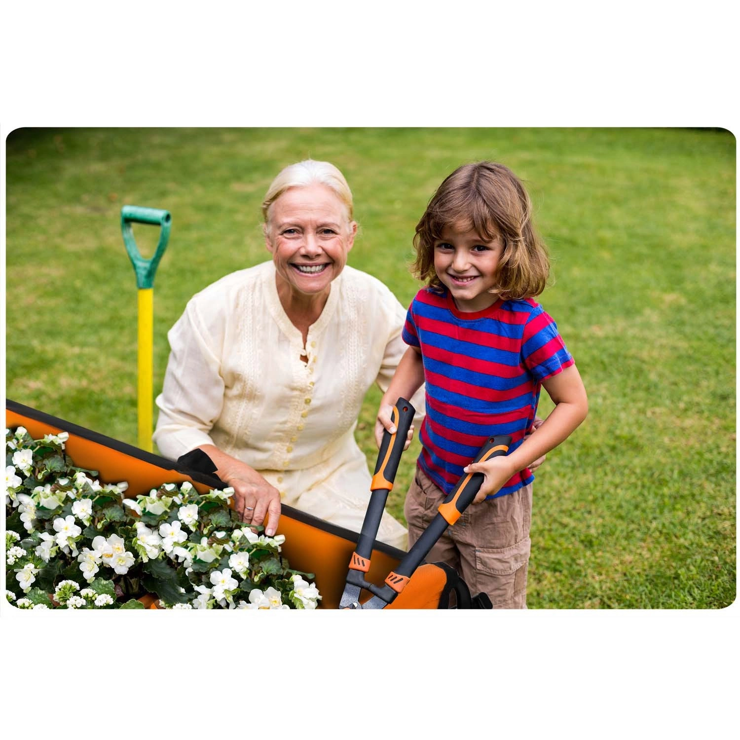 Predné kolesá sa voľne otáčajú, takže vozík hladko prejde aj užšími uličkami a nerovným terénom. Teleskopická rukoväť s ergonomickým úchopom zvyšuje komfort.