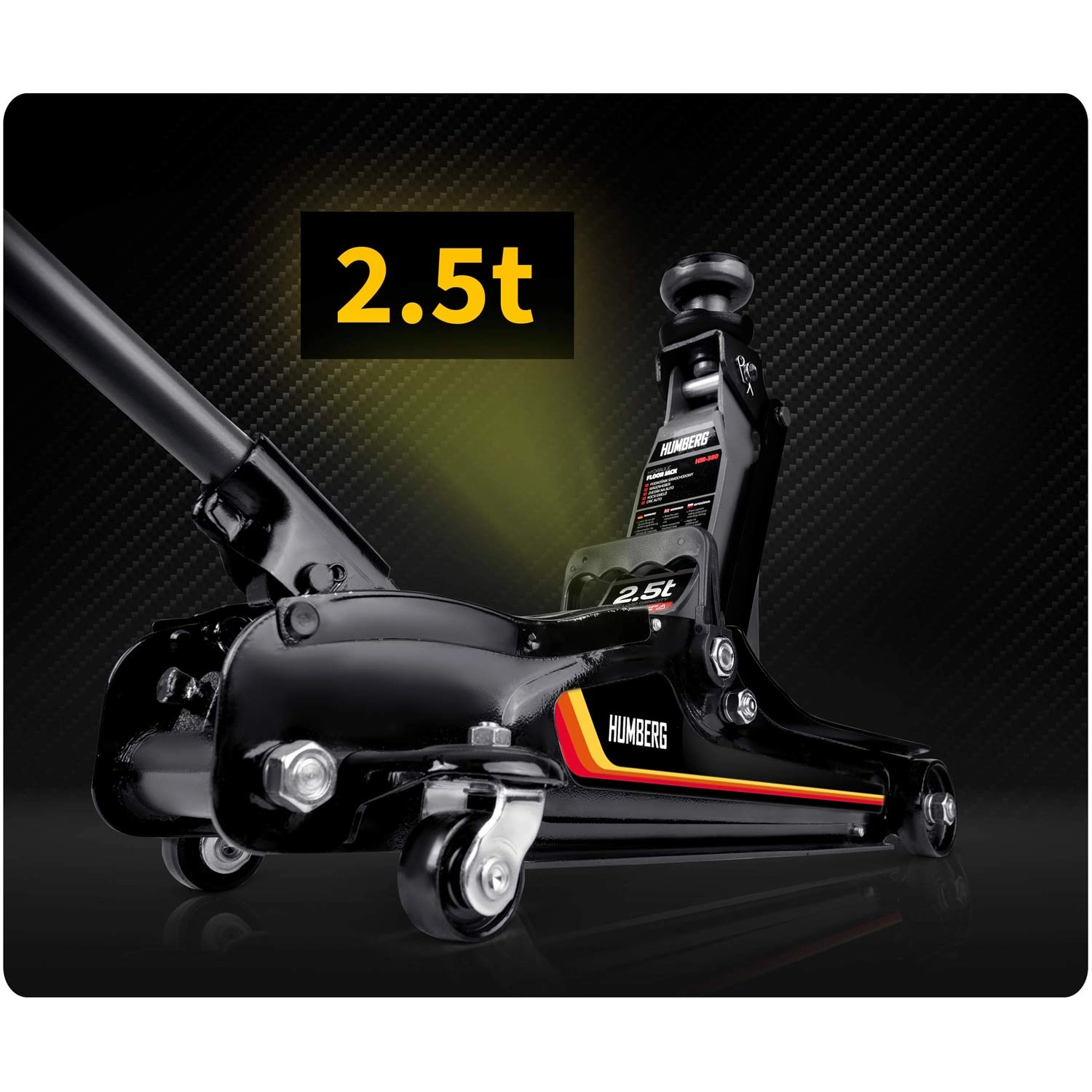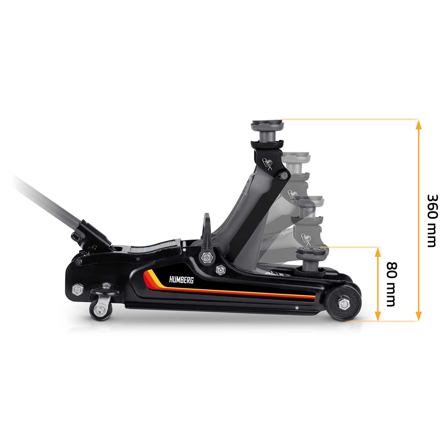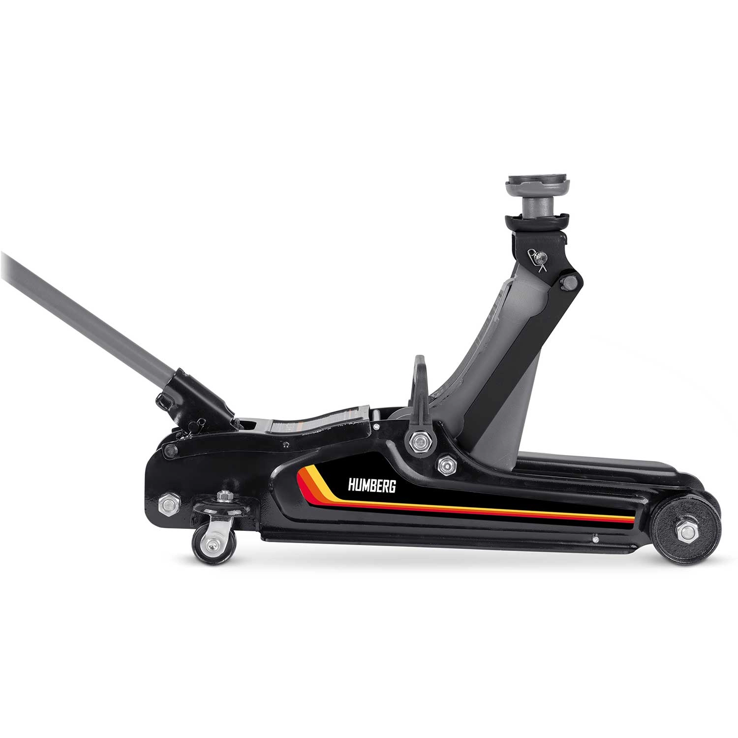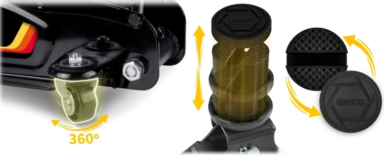 Nízkoprofilový zdvihák HUMBERG 2,5 t je ideálnou voľbou pre rýchle a bezpečné zdvíhanie osobných áut, multivanov i menších dodávok do hmotnosti 2 500 kg. Nízky profil so zdvihom 80–360 mm umožní prácu aj pri športovejšie posadených autách. Jednopiestová hydraulická jednotka zabezpečuje plynulé a efektívne zdvíhanie, zatiaľ čo pretlakový bezpečnostný ventil chráni pred preťažením.