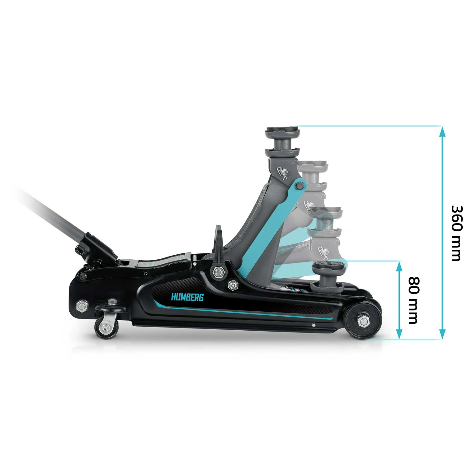 Dostaňte sa bezpečne aj pod nízke vozidlá vďaka minimálnej výške 80 mm a zdvíhajte až do 360 mm pre pohodlný servis kolies a podvozku.