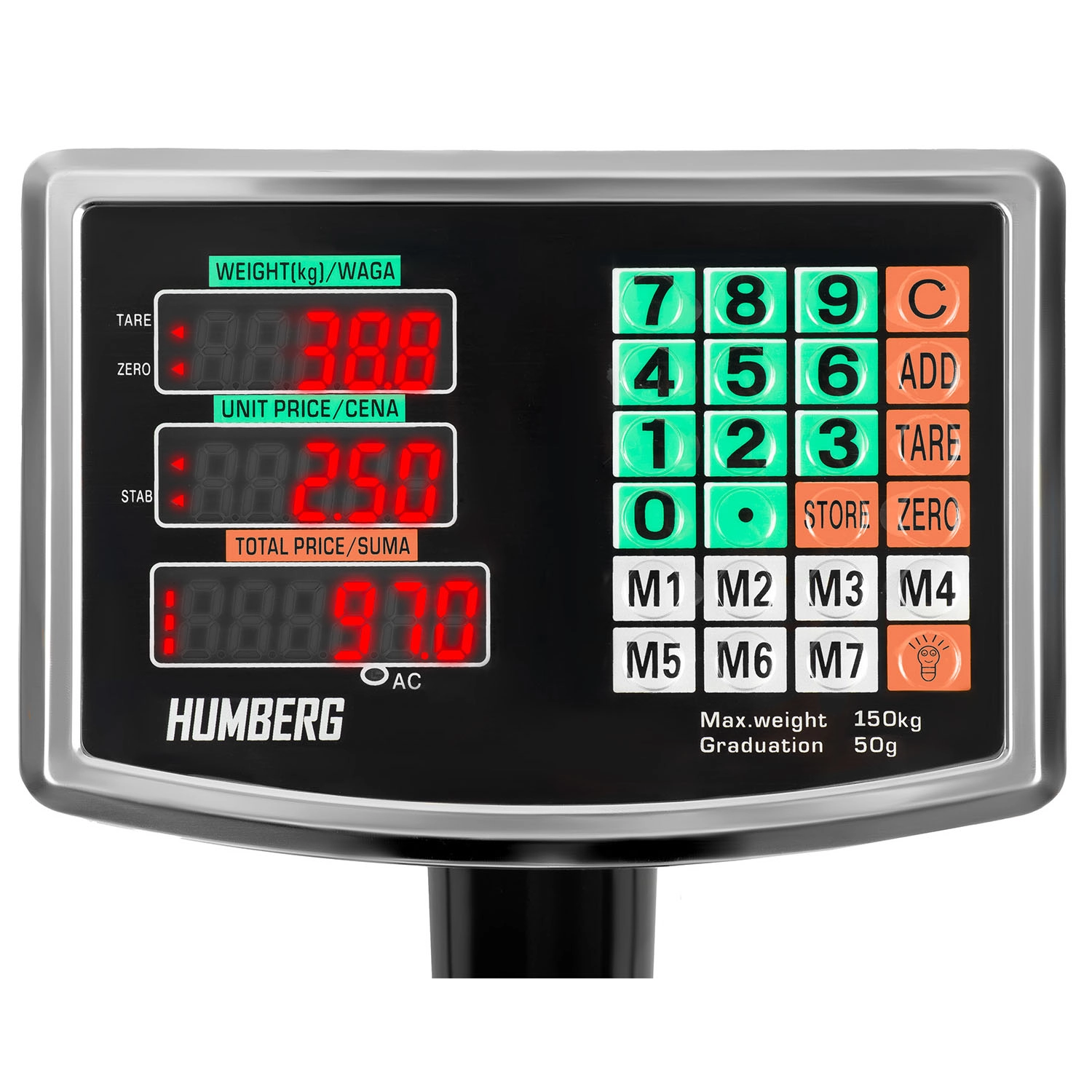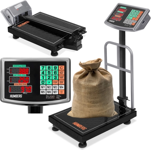 Táto profesionálna plošinová váha HUMBREG MH-191 je navrhnutá na presné a rýchle váženie v náročnej prevádzke. Presnosť 0,05 kg, maximálne zaťaženie 150 kg a trojriadkový podsvietený LCD pre prehľadné odčítanie uľahčujú prácu v skladoch, dielňach aj pri expedícii. Upozornenie na preťaženie chráni zariadenie aj vážený tovar.