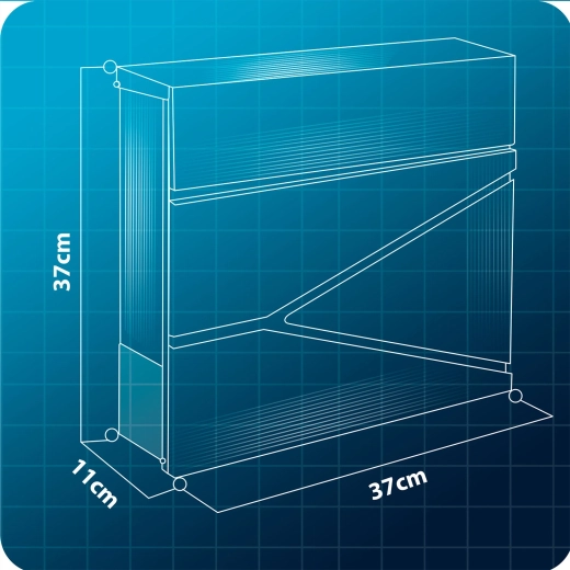 Rýchla inštalácia vďaka priloženej sade montážnych prvkov. Štyri montážne body poskytujú stabilné uchytenie na stenu či plot. Elegantné geometrické línie sa skvele hodia k moderným fasádam a doplnia vzhľad vášho domu.