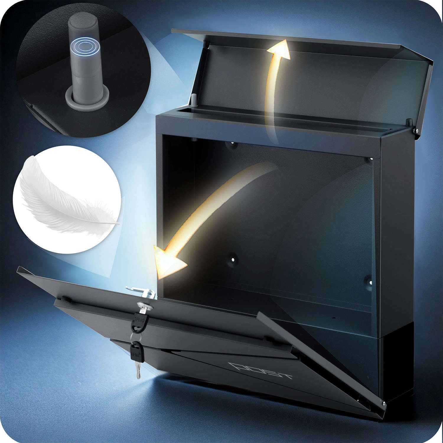 Veko horného vhozu sa zatvára plynulo a potichu, takže neruší vás ani susedov. Zároveň prekryt chráni poštu pred dažďom a snehom.